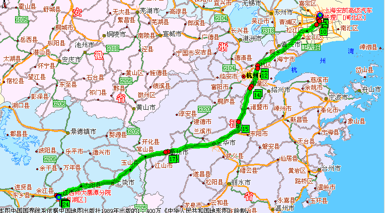 上海——杭州——杭金衢高速(金华方向)——常山——黎温高速——鹰潭西——(206国道)龙虎山