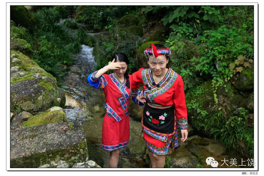 8月17日,三清山乡引浆村畲民新村迎来了一个百人旅游团,村民和游客热情交流。摄影师们通过镜头定格了一个又一个美丽的画面:参天银杏倒影在碧橙的溪水;畲族新村的村民们穿着五颜六色的畲族服装载歌载舞;一幢幢传统的石构或木构老房屋,在述说着那古老的故事;漂亮的畲族姑娘念想着外出打工的小伙,在村口的小溪边驻足;暮色降临,村里的男女老少身着畲族传统服饰整装束发。