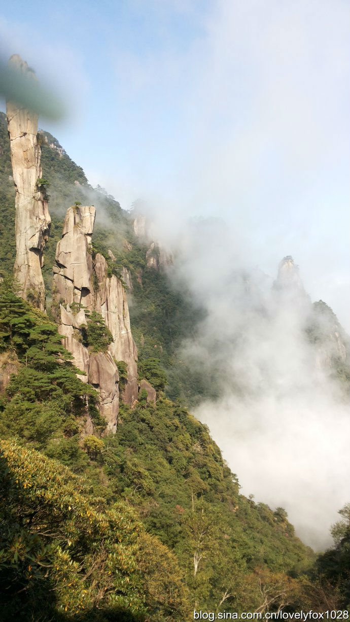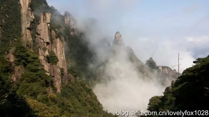 巨蟒出山 : 一峰突兀入九天,巨蟒化龙腾飞的刹那,横亘凌空危危耸耸。一条未能转运的蛇 ,赤裸裸裸露的躯干, 追悔未在一切发生之前,参透这凡尘早该参透的禅,如今, 在三清山独伫云海成枯石。