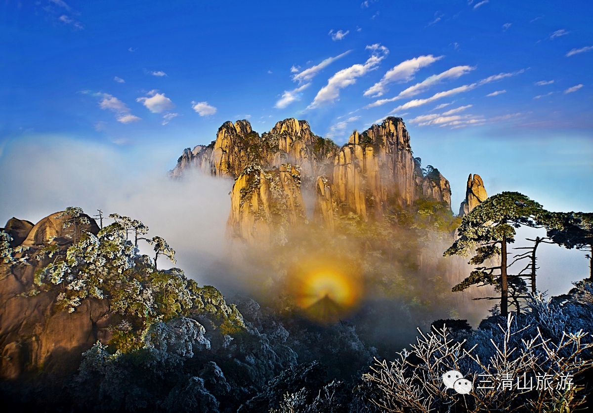 三清山佛光,可遇而不可求。霁雪初晴,云海溢起,层峦叠嶂的三清山,佛光常在此现身。斑斓五彩的佛光与洁净细腻的白雪形成强烈对比,仿佛时间就在那一刻凝结,天地间的美好悠然再现!佛光又称‘宝光’或者是‘祥光’,国人视它为吉兆,认为佛光象征着吉祥如意。