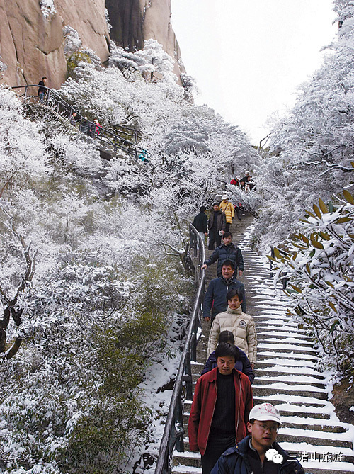 12月3日,三清山风景区迎来入冬的首场冬雪。加上小编1日发布三清山云雾佛光视频,赏雪、拍雪的游客都红绿蓝冲锋衣全副武装纷至沓来。大面积雾凇景观,松树枝上挂满了雾凇,在阳光的照射下,显得晶莹剔透。