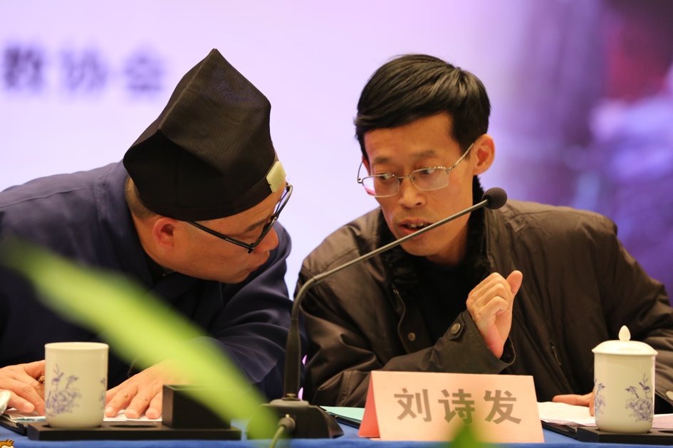 “三清山的道教文化大有文章可做”会议主持人、市民宗局刘局长与张金涛会长深入交流