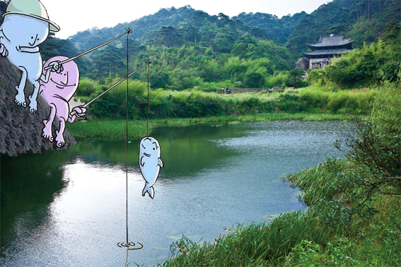 你听说三清宫能钓鱼吗?看我俩,很有收获哦。