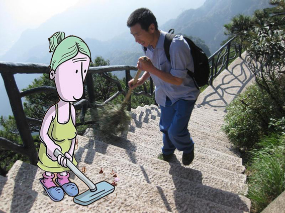 听说三清山环卫工很辛苦,大嫂我来帮你打扫下。