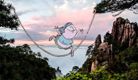 上面空气很好耶,跟我一起来跳跳绳!