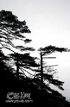 渐渐的,三清松亦在云雾中出现了。据说,由于受高山风、霜、雨、雾等气候影响,三清松造型千姿百态,枝桠曲折,树冠平展,枝条多往悬崖外伸展,像一群攀着悬崖玩耍的孩子。同行者曰:很像黄山啊!
