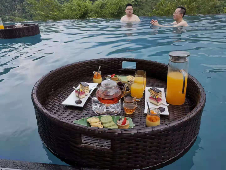 在三清山,除了爬山,还有这样一个“全能”玩水的好去处。那便是三清山雷迪森度假酒店,打卡无边泳池、泡温泉、漂浮下午茶。还有豪华客房和三清山风情美景,快来预订三清山雷迪森度假酒店,保您满意而归,预定电话:18079312866。
