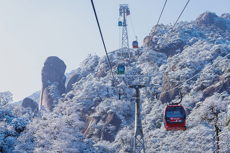 行至索道,坐上缆车,眺望窗外,白白的雪花晒在三清山群峰之间,铺满整个天际。俯视脚下的云海,如临大海之滨,连天波涛,漫无边际。