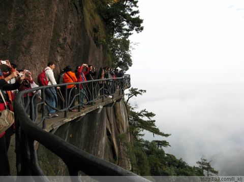 和黄山相比,三清山更让人迷恋和注目。导游挂在口里的一句话“走路不看景,看景不走路。”身在此山中时对这话才更加深有体会。三清山的古树好客,走在沿山体峭壁而建的栈道上,一旦被旁边美丽的风景吸引眼球,你的脑袋定会与经常横到栈道上欢迎你的古树枝杆来个亲密碰撞,你的头撞痛事小,损坏了世界自然遗产可就事大了