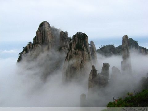!所以请驻足观景吧。三清山的山石以秀丽闻名,围着山峰缭绕缠绵的云雾更给这座山赋予了灵性。云雾瞬息万变,时而异军突起,白团团的云雾浓浓地快速将山体包裹起来;时而乖巧可人,丝丝缕缕温柔地缠绕着山峰;时而安娴沉静,静静地依偎在山峰的周围;时而又俏皮淘气,悄悄从各处山缝间隙里袅袅升起,相互追逐嘻戏。只要你的眼睛不离开,眼前就如同一幅会动的水墨画卷,让人留恋和期待。