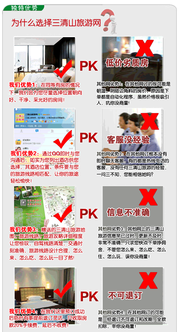 三清山日上山庄位于三清山中心景区南清园南天门下,三清山南部索道上站(上站到山庄要走10-20分钟),位置较为优越。山庄拥有各式客房80余间(其中60间客房配备闭路电视、地毯、热水淋浴、独卫等设施)和多功能厅、美容厅等。四周著名景点密集,地处南部“南清园”、北部“玉京峰、三清宫”、西部“流霞台”、东部“三排尖”等景区的交汇处,可观老道拜月、众仙迎客等二十多个景点,是观日出、晚霞理想之所。入住日上山庄,游遍东西南北不走回头路,是三清山上地理位置最佳的山庄宾馆。