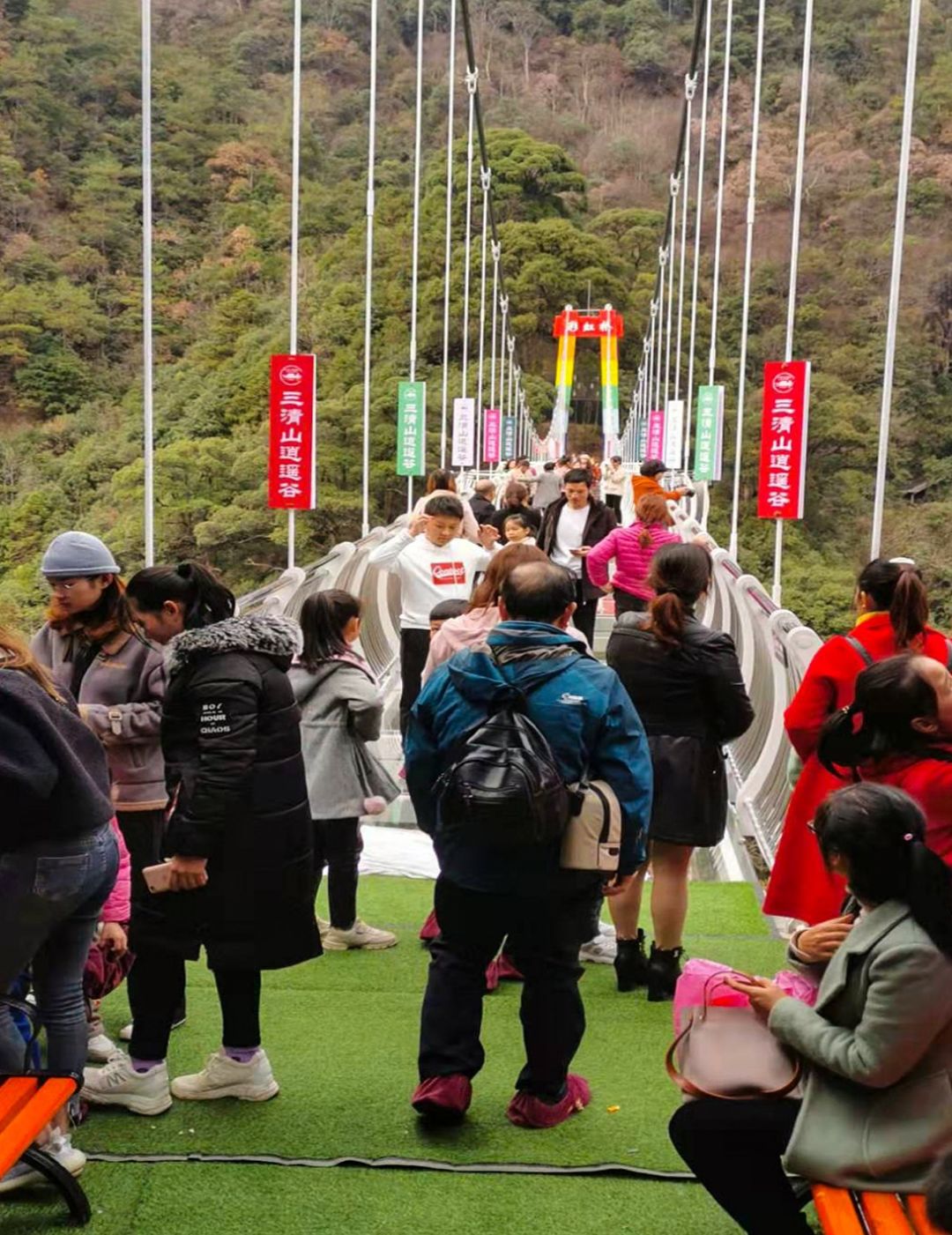 今日恰逢周末,三清山天气格外的好,来自全国各地3000多名游客齐聚三清山逍遥谷,带火三清山冬季旅游!
